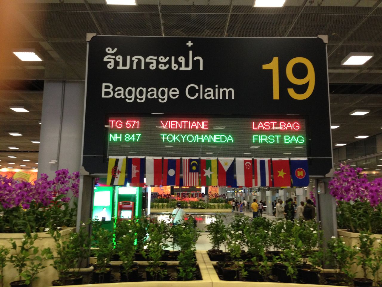 そして荷物を受取に行く。ここで少しだけあわてる。自分のチケットにはTG6108とある。しかし荷物を受け取る所にはNH847 / ET1752と表示されている。うん?ETって何だ。そんな飛行機あるのか。