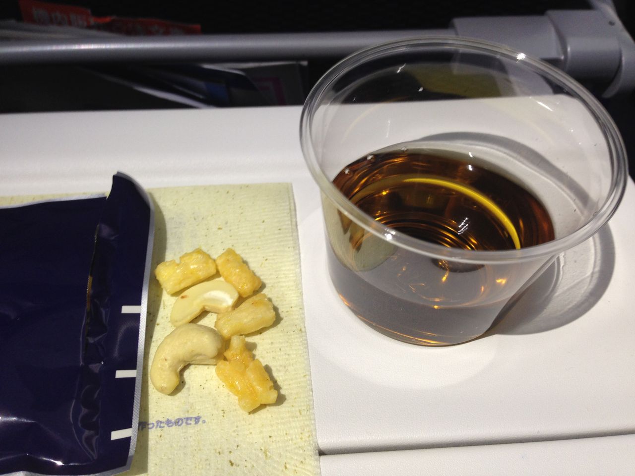 まず離陸後飛行から安定してから出される定番のおつまみ&ドリンク。
