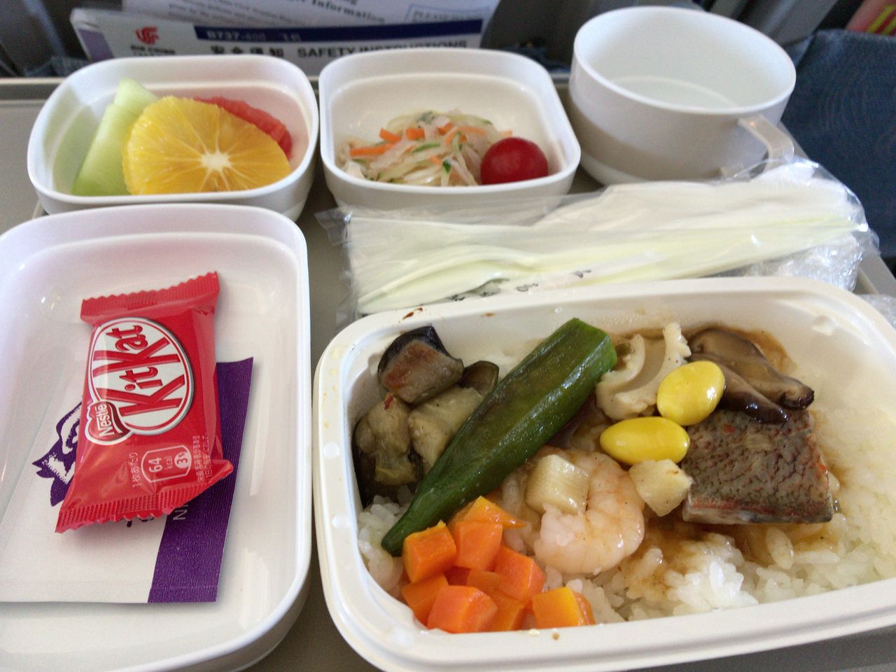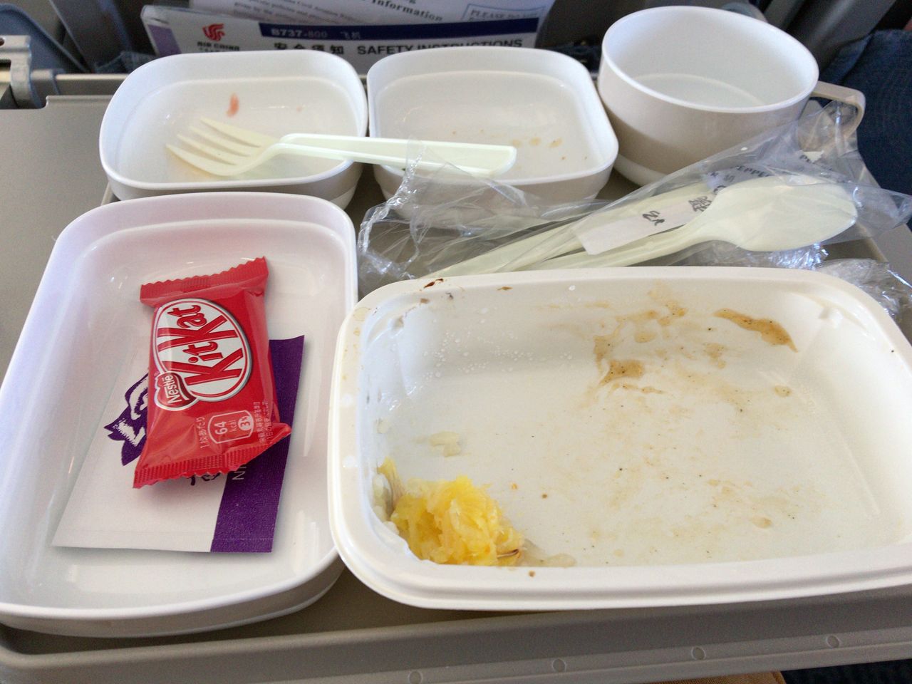 今回の搭乗で特に問題があったわけではないが、不思議なのは1人の男性客室乗務員。飛行機内で写真を撮るのは禁止されていると食事の写真を撮っているだけで注意された。