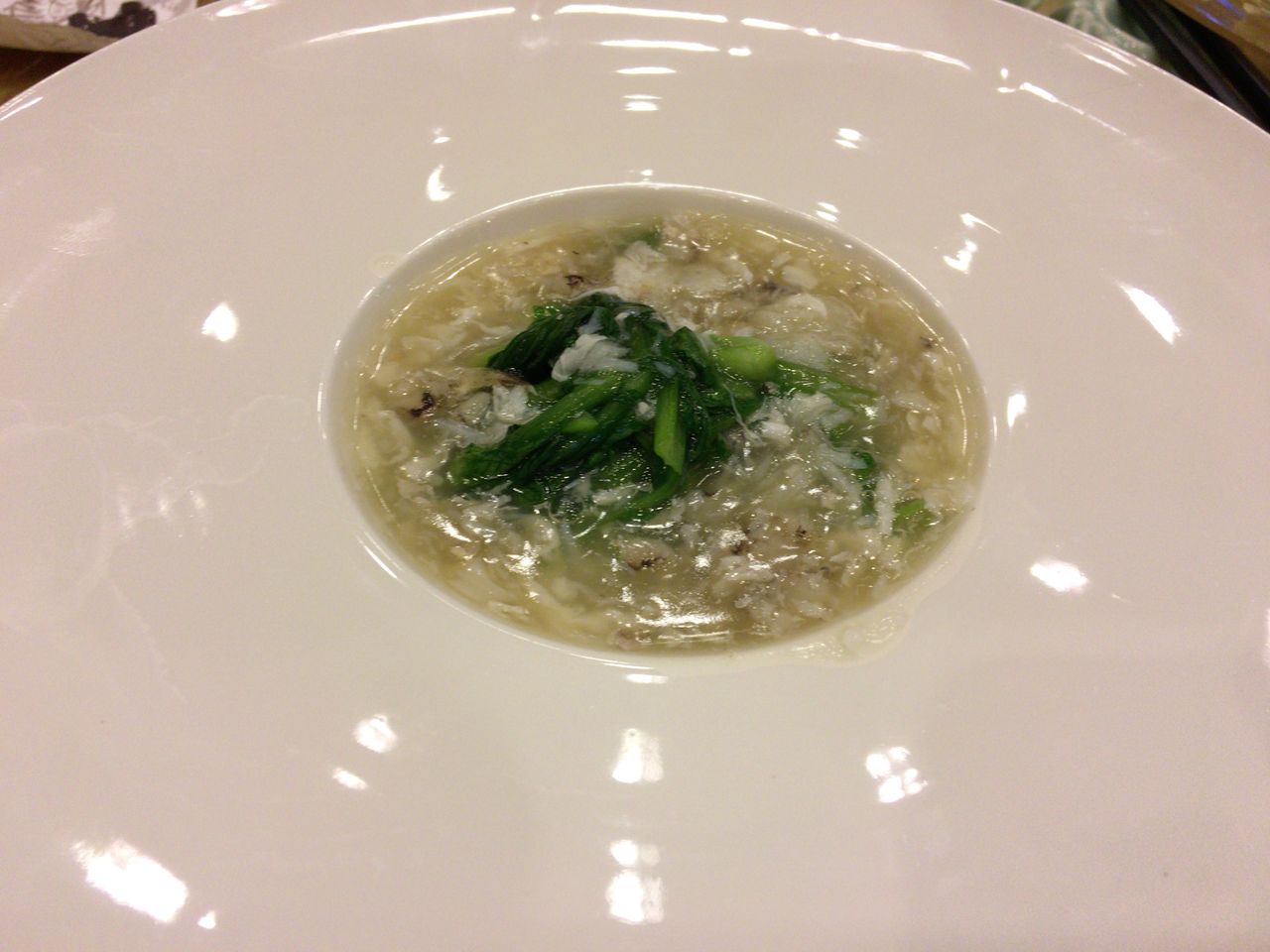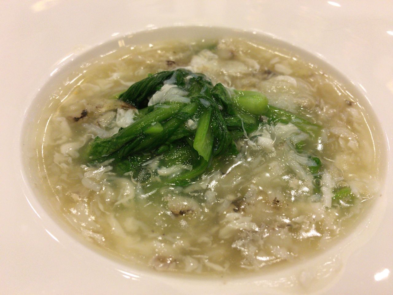 チンゲンサイを薄く切ったもの。シャキシャキで美味い。さっきから野菜の旨さは分かるが、またも蟹が淡泊。