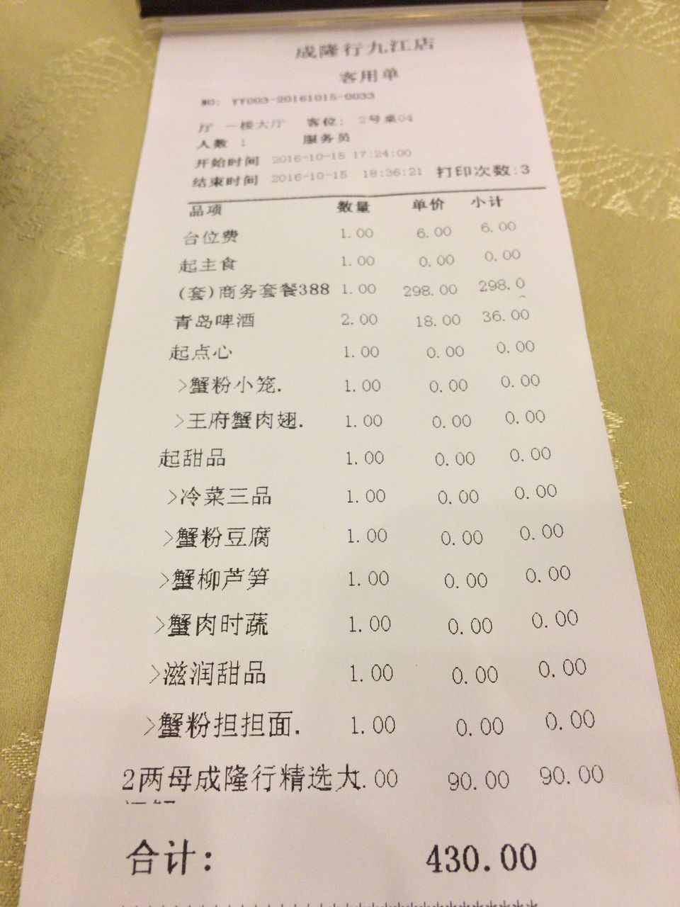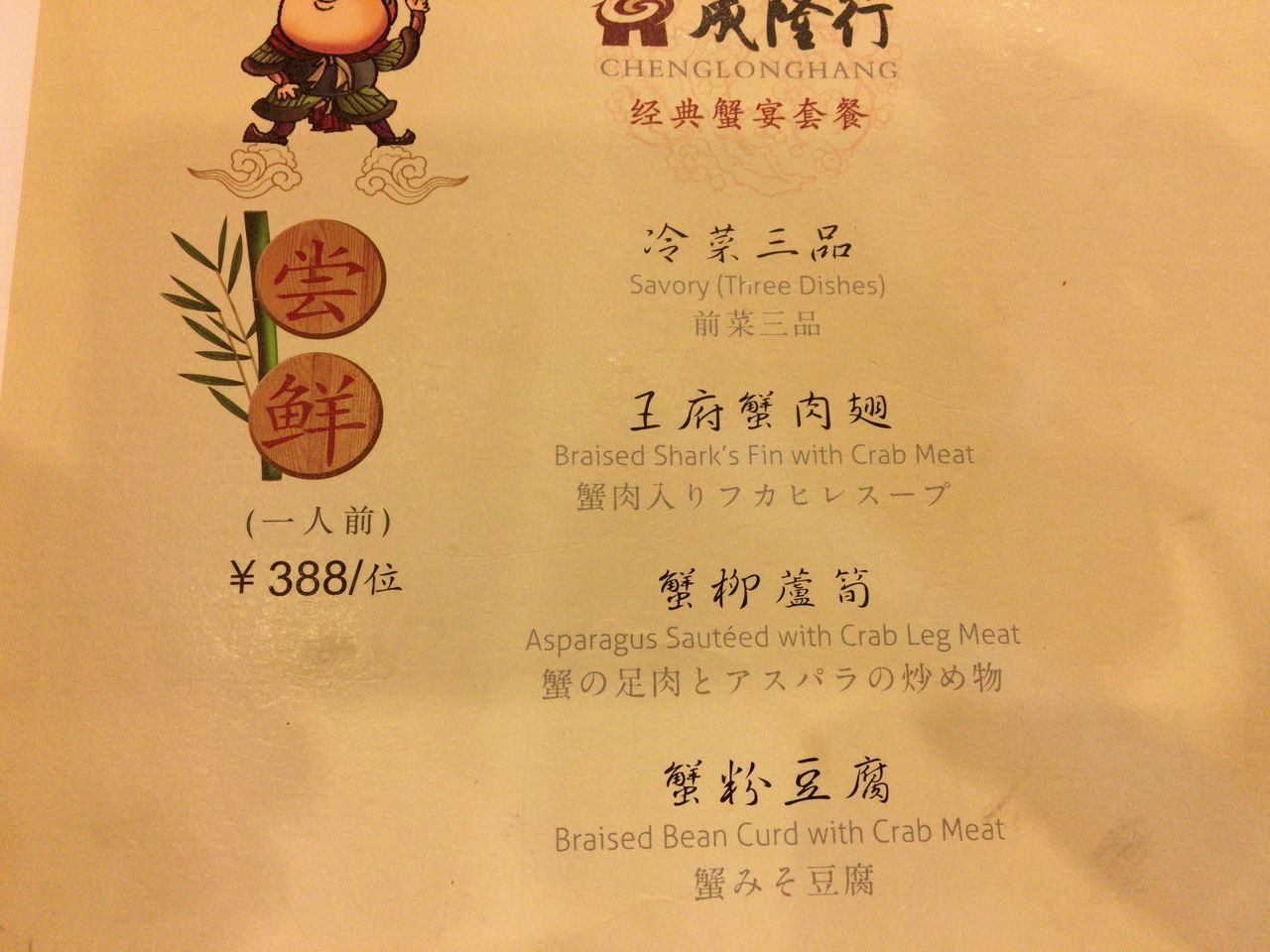 このコースをお願いしたのだが、+α払えば蒸し蟹の量が増えるらしい。388元でも大幅な予算オーバーだし、このコースで食べ足りないということはなかろう。