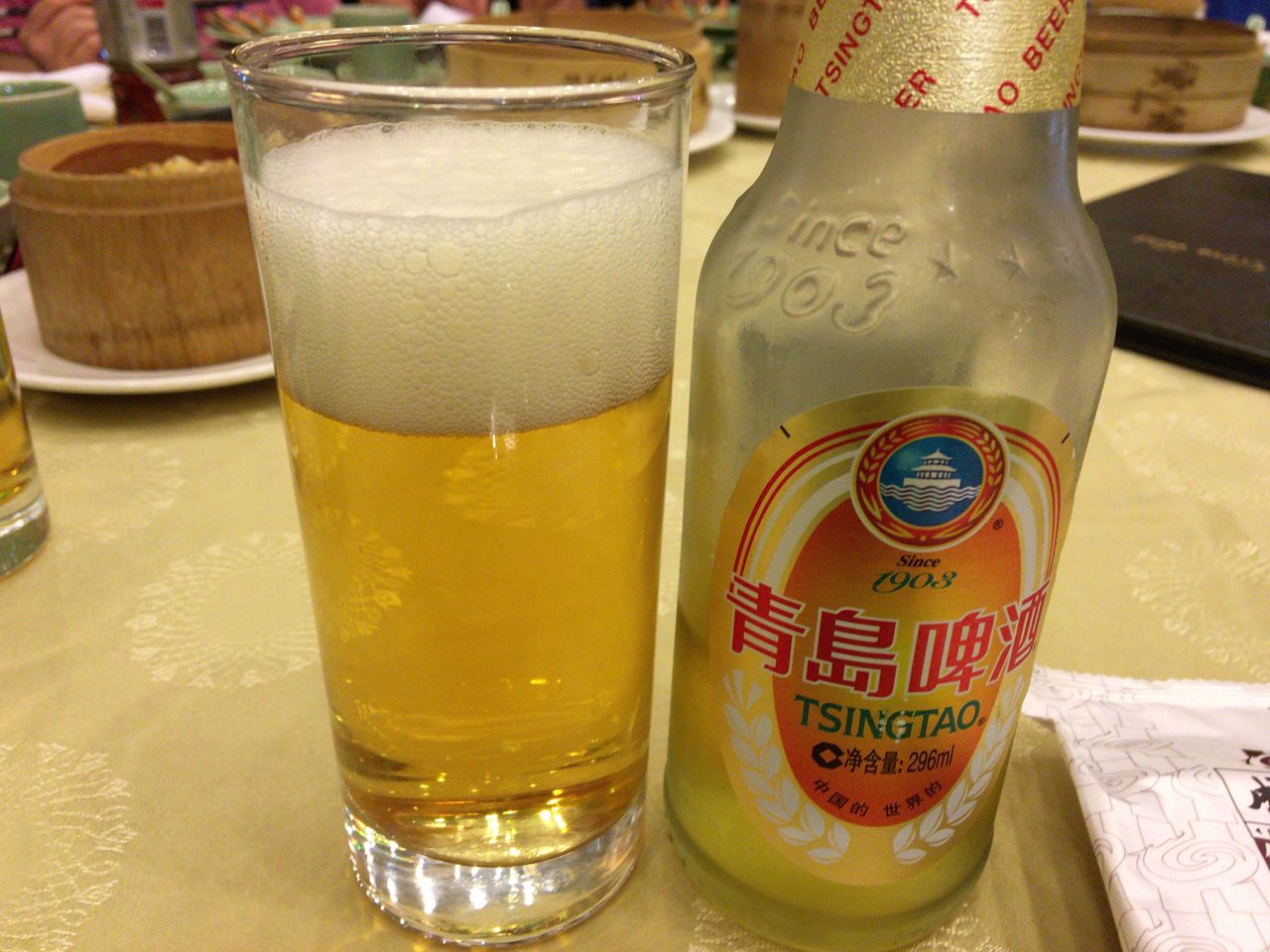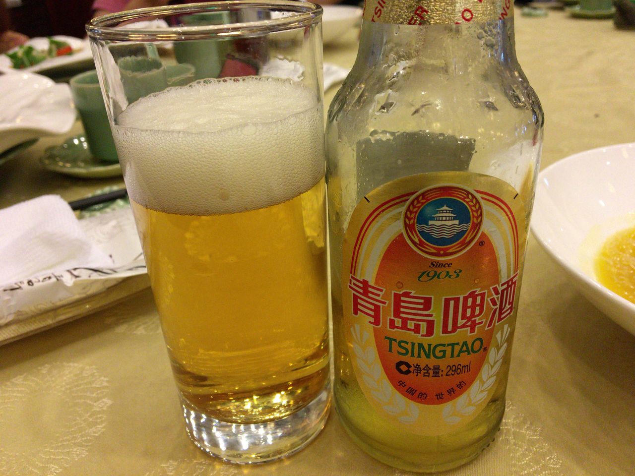 そして、懸案の青島ビールも。瓶とコップを持ってきただけで注いではくれない。