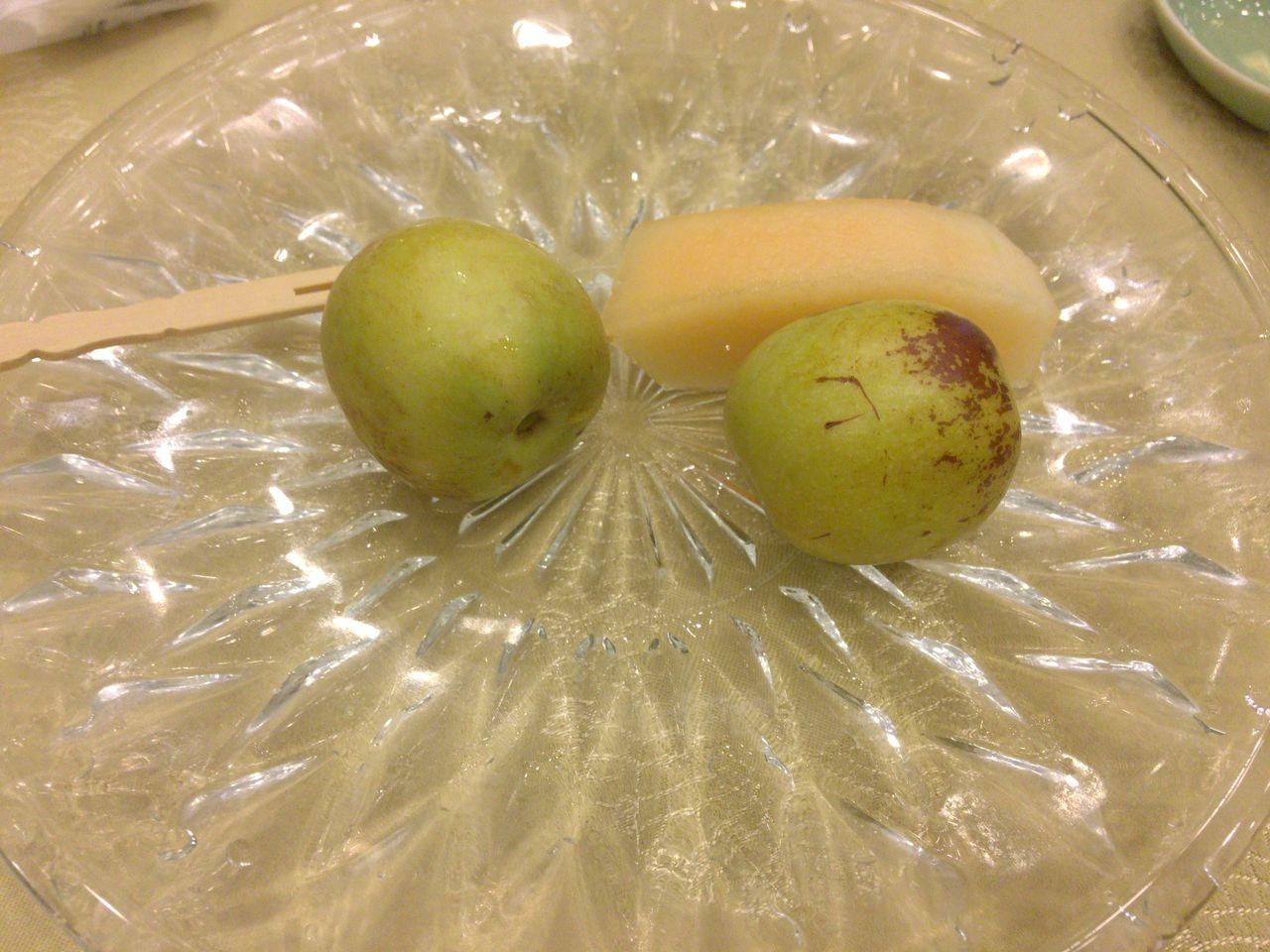 そしてりんごから水分を取ったような謎の果物。サクサクしてるが、ジューシーさがなく美味しくなかった。