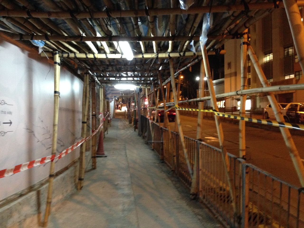 そう、竹が使われているのである。何か違和感があったのだが、この数日、工事現場の至る所で見かけた。