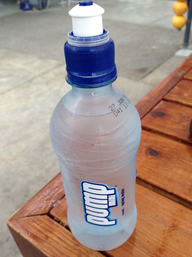 水は3ドル(270円)。こういう所だから高いと思ったがこれが普通の価格だったようだ。上の青いキャップの使い方が分からない。色々試すが分からないので諦めてフタを空けて飲む。