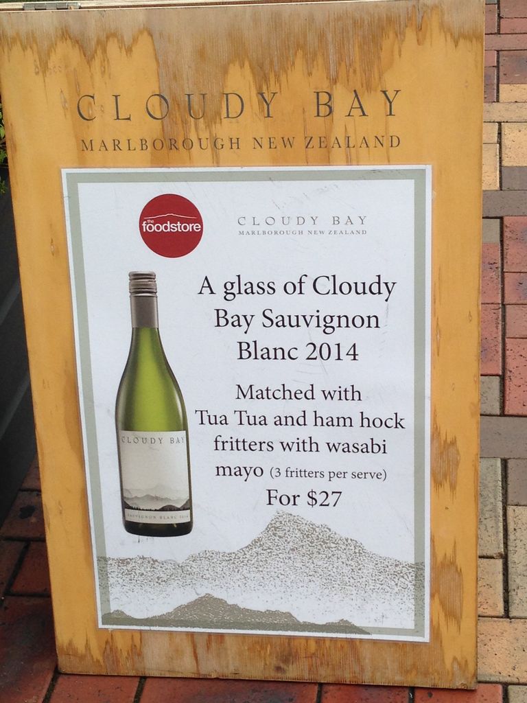 港付近はおしゃれな店がたくさん。中で気に憧れのワイン、クラウディ・ベイの専門店?があった。この時は滞在中必ず行くつもりだったが。