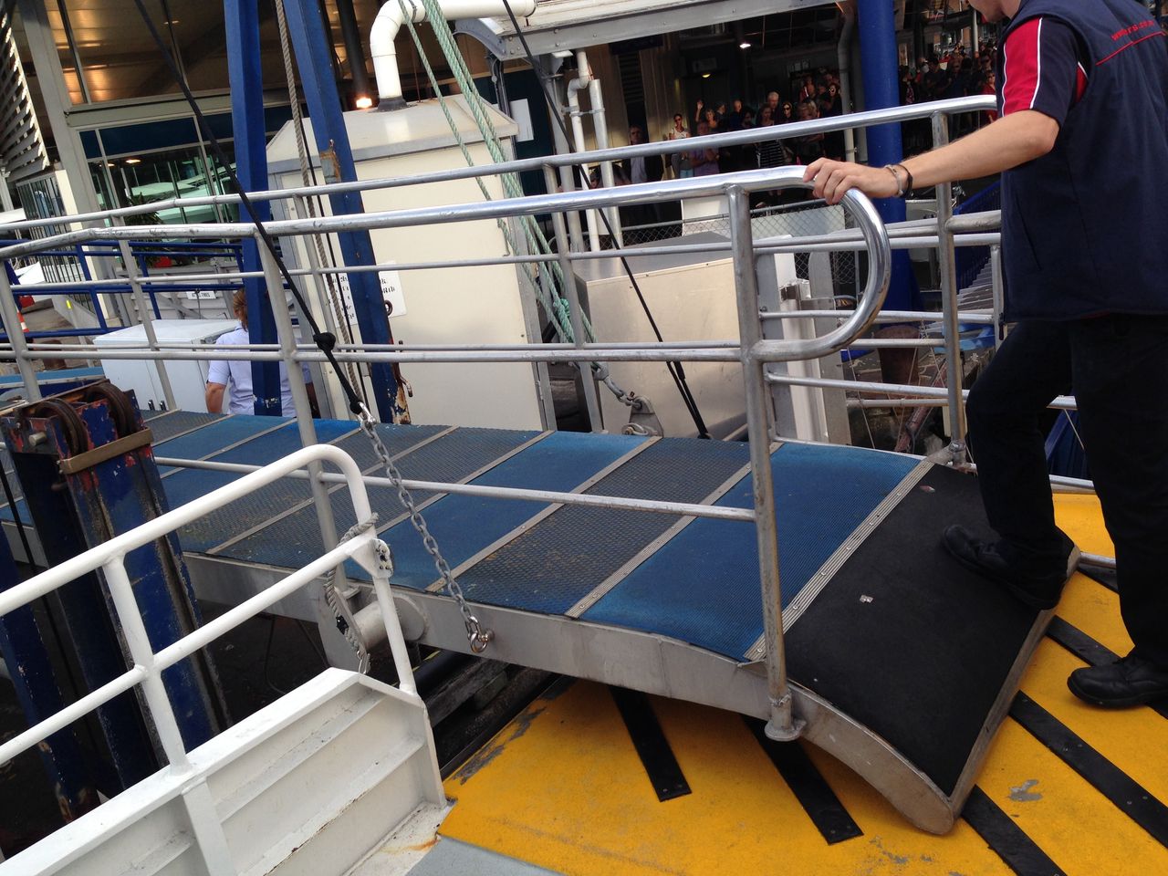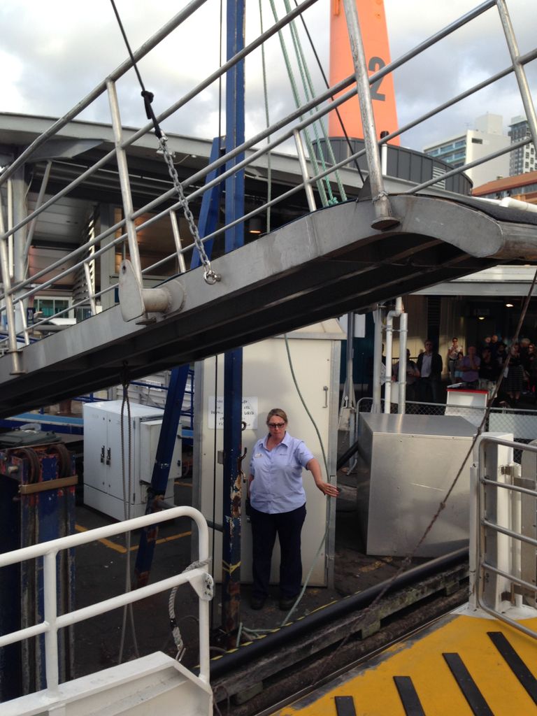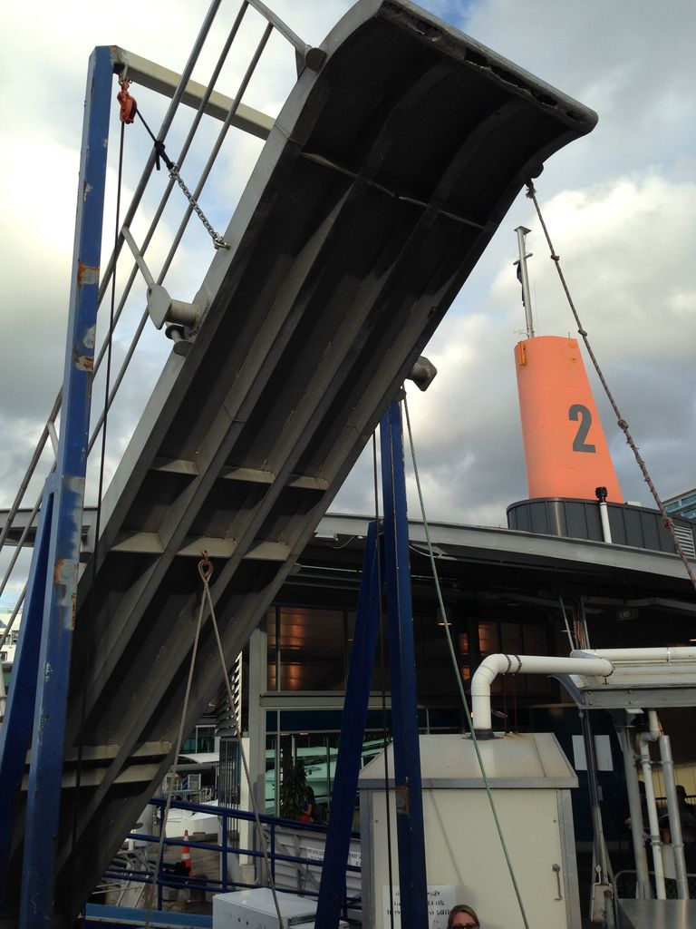 30分くらいたってオークランド・シティが見えてきた。港に到着して下車しようとすると、、