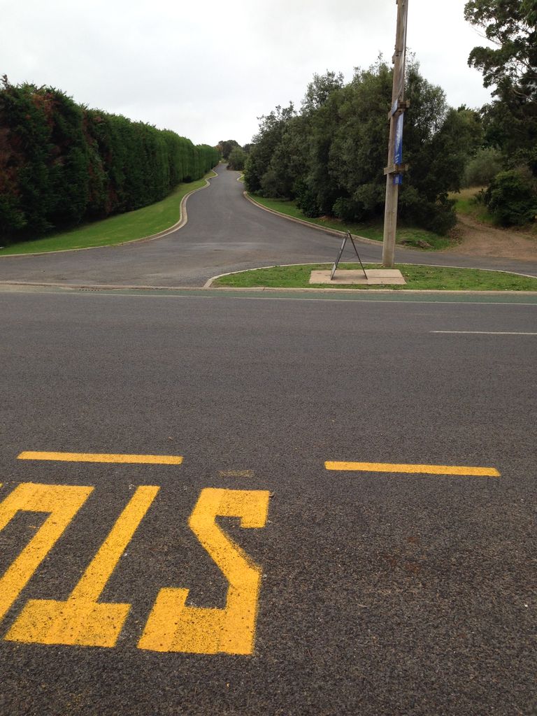 バス通りに到着。すぐ先にバス停が見えた。