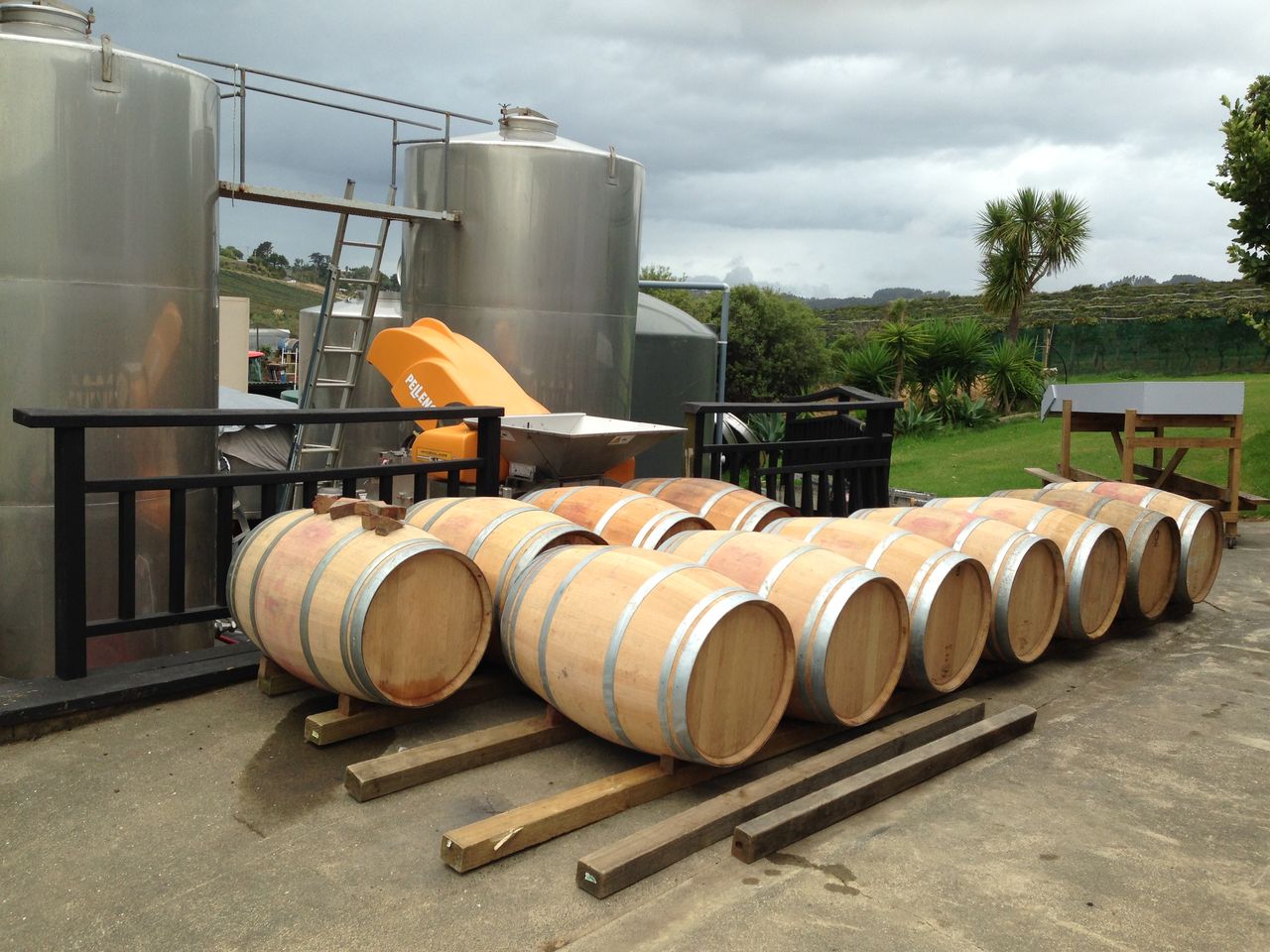 すぐ横にはワイン樽。タンクみたいなやつで発酵しているのか?