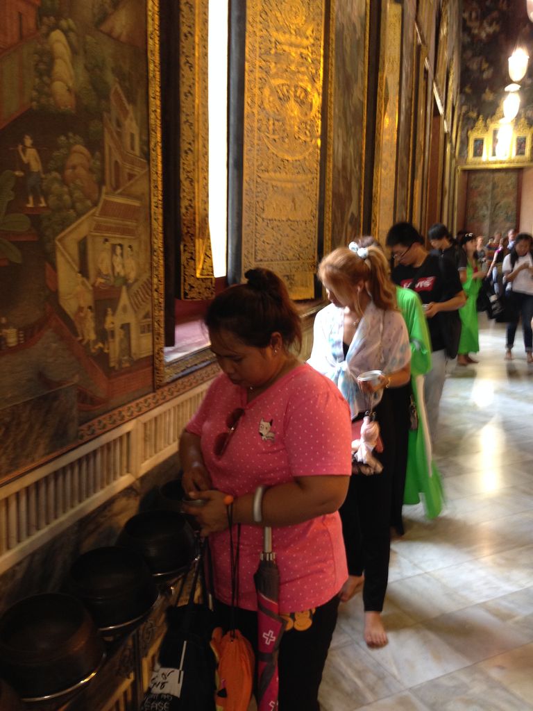 煩悩かぁ。これはやっておかないと。20バーツ(70円)払い小銭の山をもらう。さて殿さんは?と尋ねると「俺は煩悩がないからいい」との答え。煩悩がない?まさか貴族が20バーツをケチったのではないすよね?