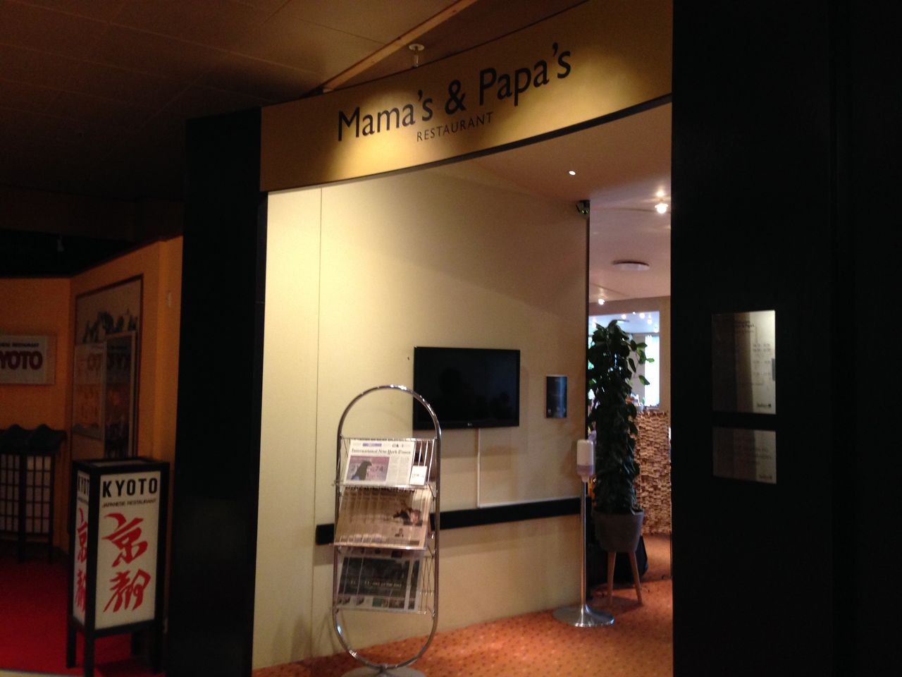 「Mama's & Papa's」という名前のレストランのようだ。隣に「京都の看板が見える」