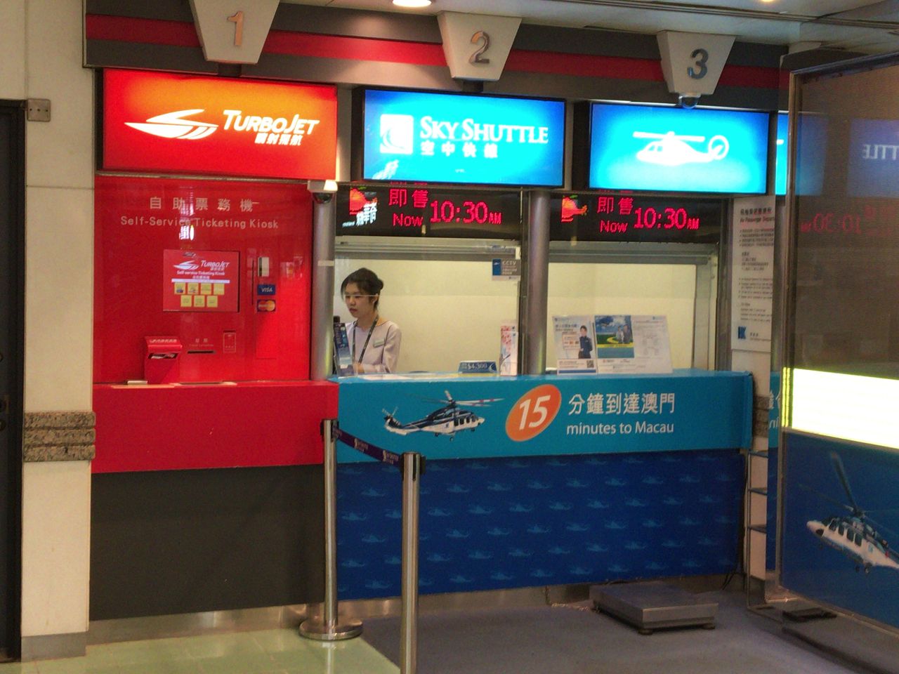 チケット売り場に行く。一番右はなんとヘリコプター。