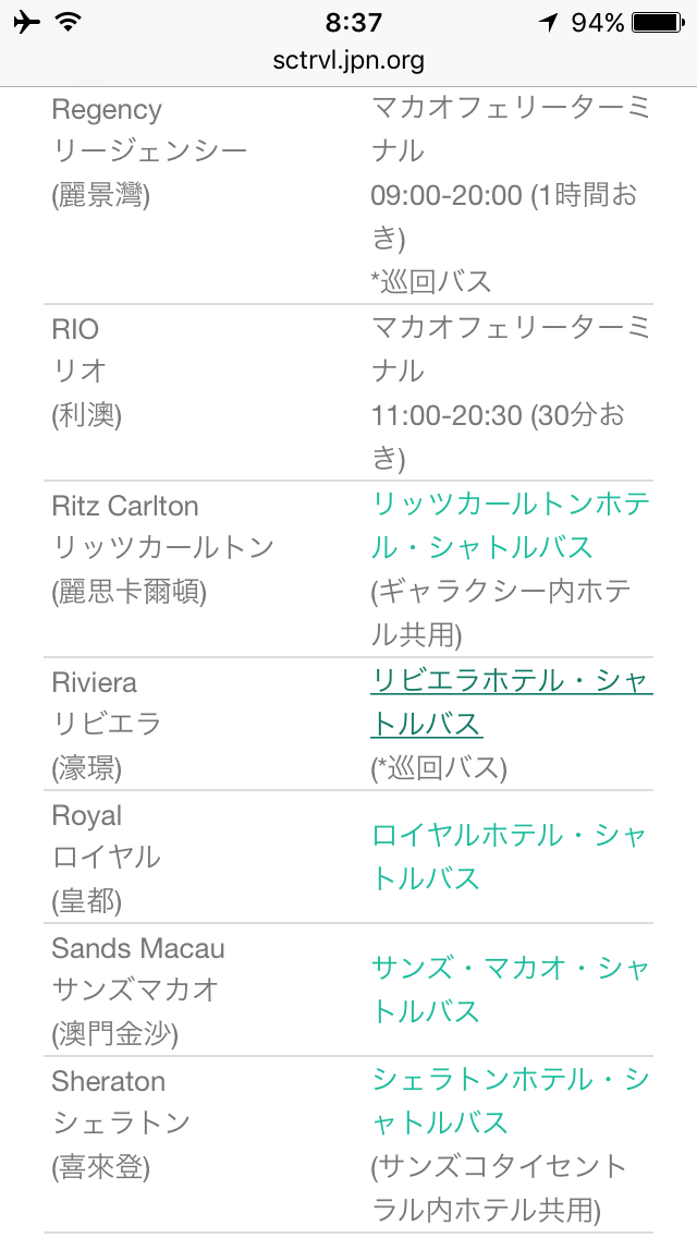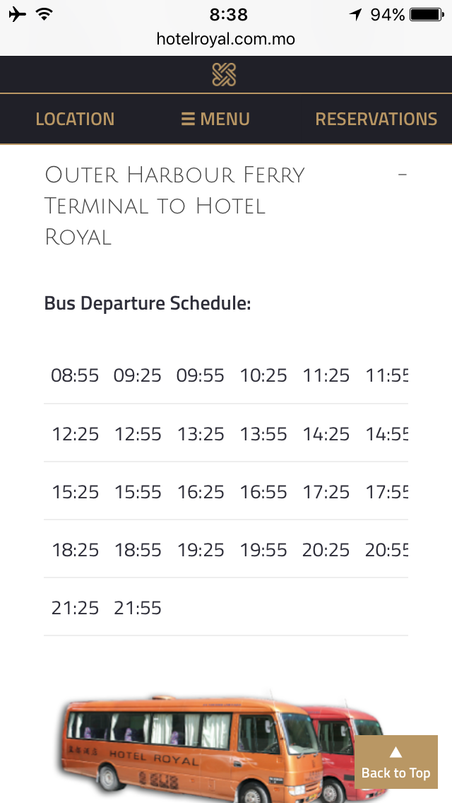 今日泊まるホテルロイヤルマカオはフェリーターミナルからシャトルバスが出ている。