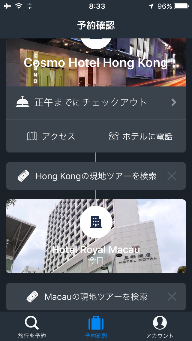 今回はエクスペディアで予約したのだが、アプリを使うとこのように表示されるので本当に便利だ。
