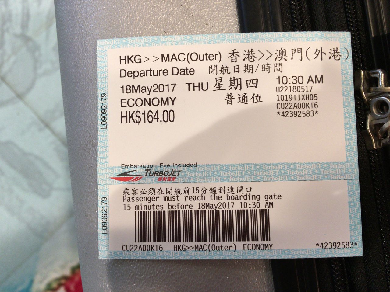 164香港ドル(2350円)は結構高い。スターフェリーのように数十円とはいかない。